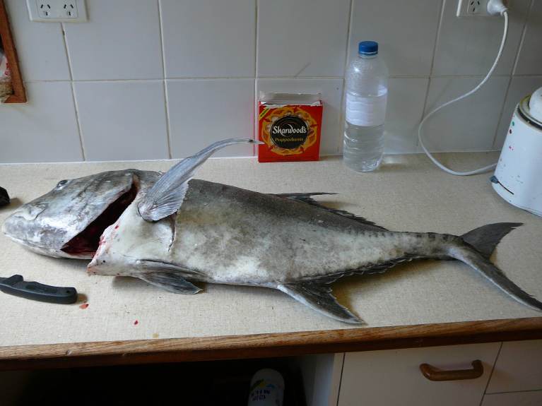 was man an Land ziehen kann. Geschaetztes Gewicht ca. 10kg. Hat ausgereicht um alle ausreichend