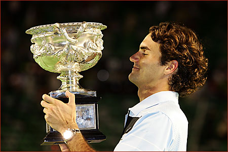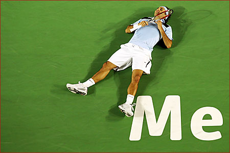 Finale Herren Tag 14 Roger Federer SUI (1)7-6 6-4 6-4 Fernando Gonzalez (CHI)[10] King Roger hat in einem ueber weite Strecken hochklassig gefuehrten Match am Ende doch mal wieder seine Klasse bewiesen. Als er im 1. Satz seinen Aufschlag zum 4:5 abgab, deutete alles auf einen ersten Satzverlust hin, denn Gonzales hatte bis dahin beeindruckend serviert. Doch Federer packte mal wieder Tennis von einem anderen Stern aus und holte sich sein break zurueck. Im Tiebreak liess er dann garnichts anbrennen und ging schnell 4-0 in Fuehrung ehe er den ersten Satz mit 7:2 im Tiebreak fuer sich entschied. In den folgenden Saetzen reichte je ein break zu Rogers Guensten um jeweils mit 6-4 zu siegen. Match Facts Federer won 120 points, Gonzalez 93 Federer made 19 unforced errors, and had 45 winners Gonzalez made 28 unforced errors and had 31 winners There were 11 aces, six to Gonzalez, five to Federer Federer's fastest serve speed was 207km/h, Gonzalez 210km/ |