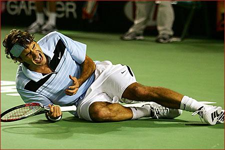 Halbfinale Tag 11 Serena Williams (USA) 7-6(5) 6-4 Nicole Vaidisova (CZE)[10] Das Spiel wurde auf beiden Seiten mit Vorhaenden dominiert. Wer mit diesen besser zurecht kam, machte auch fast immer den Punkt. Leider gab's es keinen 3. Satz den diese Party allemal verdient haette. Maria Sharapova (RUS)[1] 6-4 6-2 Kim Clijsters (BEL)[4] Es ist soweit, die Australier muessen Abschied von ihrer Lieblings Kimi nehmen. Mit standing ovation wurde die Belgerin, unter einigen Traenen, aus dem Tenniszirkus Melbourne Park verabschiedete. Bemerkenswert ist, das sie sich nach ihrer Niederlage beim Publikum entschuldigte, nicht besser gespielt zu haben. Sharapova war aber auch zu dominierend und haemmerte Kim einige Vorhandvolleys um die Ohren. Letztlich fand die Belgerin gegen das druckvolle Spiel kein Mittel. Roger Federer (SUI)[1] 6-4 6-0 6-2 Andy Roddick (USA)[6] Eine 90 min Demonstration der Federer-Kuenste beendete die in Roddick aufgekommenen Hoffnungen auf einen Finaleinzug. Roger spielte "unreal" wie er selbst du gab und brachte einfach alles zurueck. Ausserdem fuegte er Andy die 1. 0-6 Satzniederlage bei einem Grand Slam zu. Dieses Spiel hat Federer in eine andere Galaxi gehoben, an der sich viele die Zaehne ausbeissen werden. |