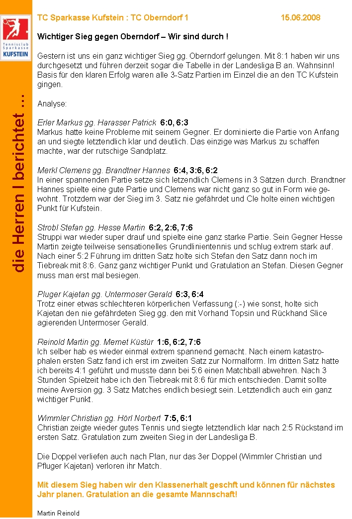 Leider fehlen in diesem Jahr die Bilder zu den jeweiligen Punktspielen. Dafür gibt es jedes Wochenende vom Martin die Spielbericht zu den einzelnen Partien. Da brauch ich mir nichtmal selbst die Mühe machen und muss soviel schreiben :)
